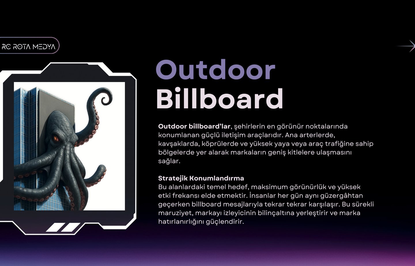 Yüksek kaliteli ekranlar ve stratejik konumlar sunuyoruz.